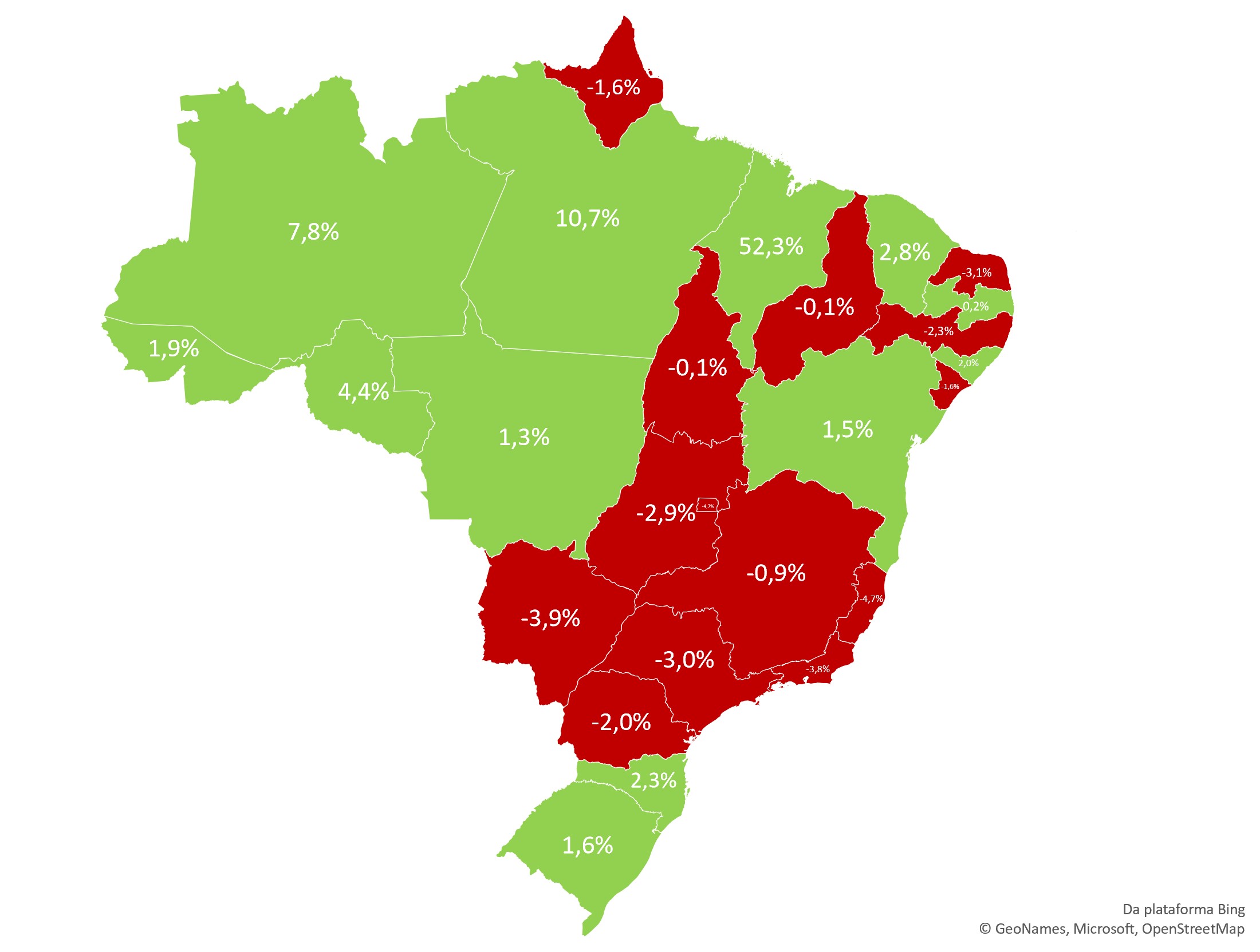 Na avaliação regional, as maiores altas ficaram concentradas nas regiões Nordeste e Norte, influenciadas por avanços no mercado livre e por temperaturas acima da média registrada no mesmo período do ano passado, cenário que aumenta o uso de equipamentos de refrigeração, como o ar-condicionado. Destaque para o Maranhão (52,3%), Pará (10,7%) e Amazonas (7,8%).