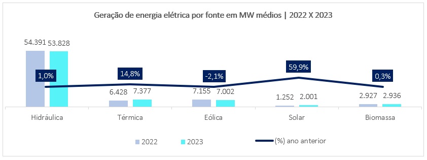 As fontes alternativas seguem com participação significativa na produção de energia elétrica. Os parques eólicos entregaram mais de 7 mil megawatts médios para o Sistema, apesar de um declínio de 2% no comparativo anual. E as fazendas solares geraram mais de 2 mil megawatts médios, volume quase 60% acima do registrado no mesmo período do ano passado.