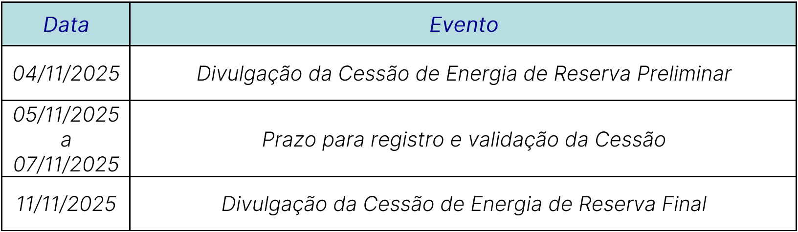 CO – cronograma da cessão anual solar do 6º leilão de energia de reserva - set/25