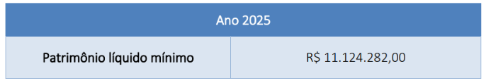 Confira abaixo o valor de Patrimônio Líquido considerado para o ciclo de 2025: