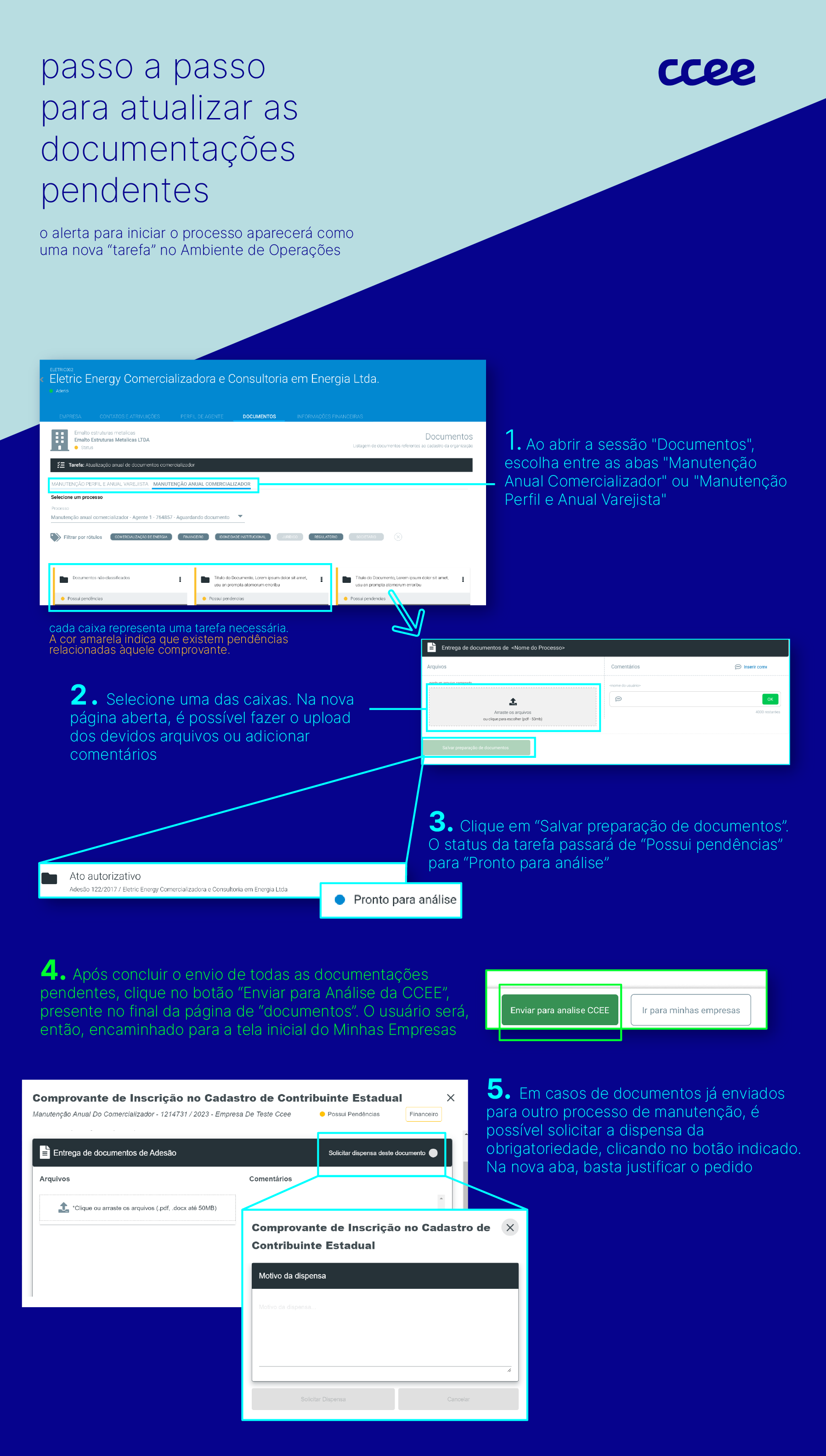 O alerta para que se inicie o processo de manutenção aparecerá para os agentes como uma nova “tarefa” no Ambiente de Operações da CCEE. Os documentos pendentes poderão ser enviados no módulo Minhas Empresas. Acesse: